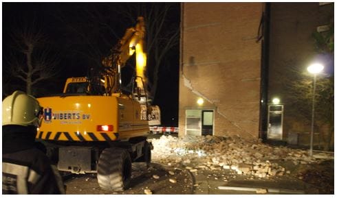 Tijdens een storm kwam het bovenste gedeelte van de gevel los. Vier huishoudens werden noodgedwongen elders ondergebracht. Naast financiƫle schade zijn erg gelukkig geen gewonden gevallen. Het incident staat niet op zichzelf en er hebben zich problemen voorgedaan met bezweken kopgevels.